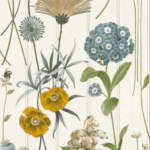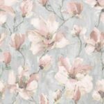 Strikingly individual 1930’s floral with a retro vibe on bold, contrasting grounds which add pops of colour and a 3D dimension to this stunning pattern. Soft blue with dusky rose, jet with flashes of cerise, cantaloupe with bursts of green and emerald with hints of soft gold – thrilling colour combinations for breathtaking looks.