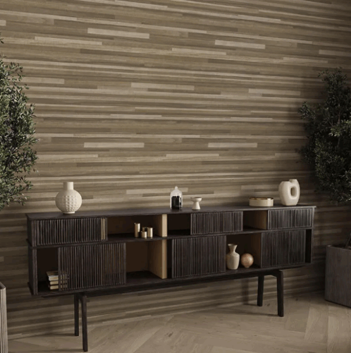 Use the Belgravia Decor Palma Wood Effect Mocha/Champagne Metallic Wallpaper to bring the warmth of natural wood without the maintenance. It works well for creating an accent wall, adding character to any room.