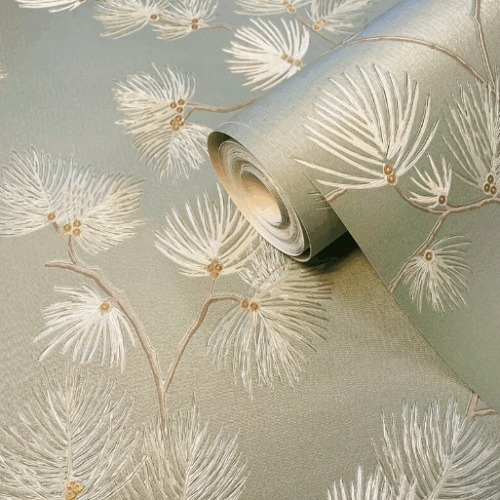 Transform your home with nature’s charm using the Belgravia Decor Valentino Pine Tree Sage Metallic Wallpaper. Whether you’re styling a peaceful bedroom, an inviting living room, or a sophisticated dining room, this washable wallpaper is a splendid choice.