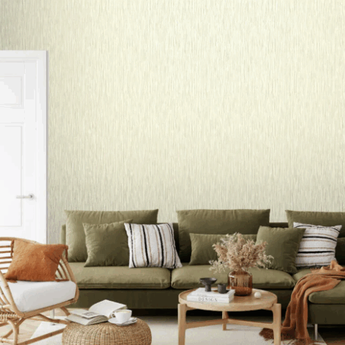 Elevate your space with the Rasch Rosalie Plain Texture Sage Metallic Wallpaper. Whether enhancing a cosy bedroom, a refined living room, or a graceful hallway, this washable wallpaper creates a fresh, inviting ambience.